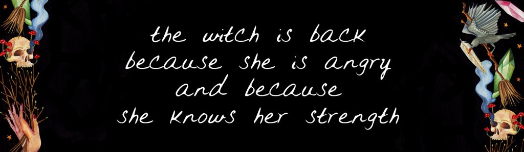 Today’s resurgence of interest in all things witchy tells me that she’s with us again for a reason. It’s not just that the sheer versatility of her character lends itself easily to fiction in books and on screen, and even in the lyrics of contemporary music. No, the witch is back because she is angry and because she knows her strength.